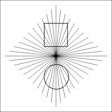 The small distorted looking circle is really a circle, and the small distorted looking square is really a square.